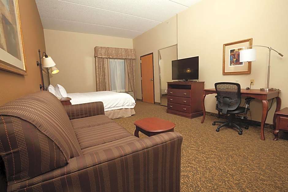 This room features a separate seating area, cable TV, a microwave, and a refrigerator.